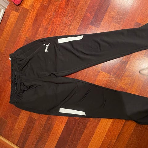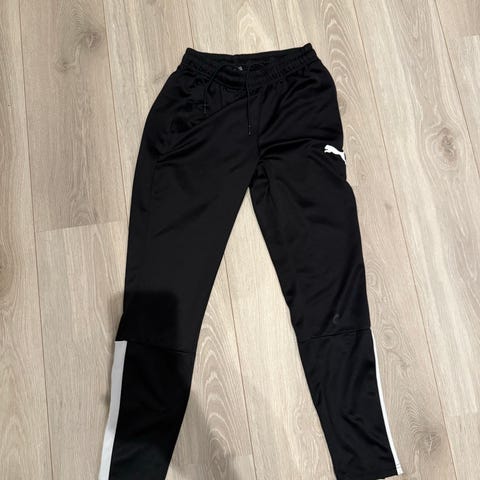 Puma treningsbukse i størrelse S, svart farge, designet for unisex bruk. Laget av materiale egnet for sport og trening, med elastisk midje og glidelåslommer for praktisk oppbevaring.