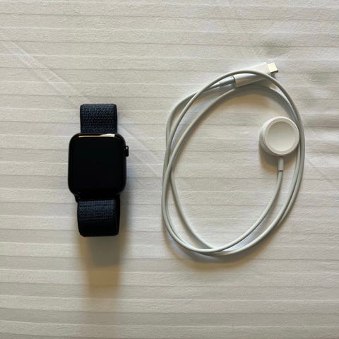 Apple Watch Series 4 smartklokke i svart. Leveres med ladekabel og ekstra rem. Passer for daglig bruk og har funksjoner for helseovervåkning og varsler.