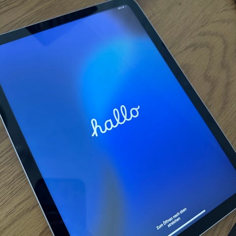 Apple iPad nettbrett med 128 GB lagringskapasitet. Apple iPad Pro 11 tommer med 128 GB lagringskapasitet. Enheten er utstyrt med et grønt deksel, som dekker skjermen. Passer for bruk som nettbrett og lett bærbar datamaskin.