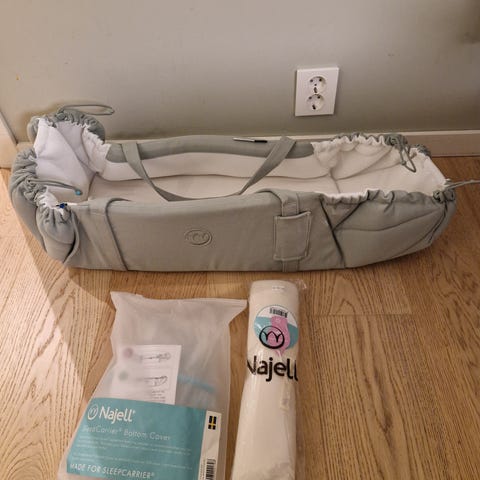 Selger en så godt som ubrukt Najell Sleep carrier X med vanntett madrasstrekk i fargen «linen beige» og reducer.