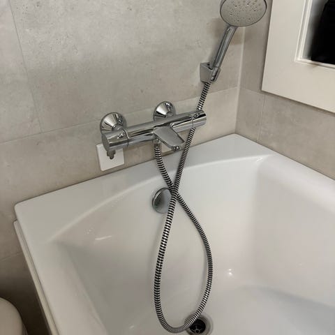 Pent brukt regnfallsdusj i krom fra Damixa selges i forbindelse med renovering. Settet selges komplett med regnfallsdusj, hånddusj og blandebatteri. Kan hentes fra ettermiddagen 14. januar, da rivingen før renovering starter da.