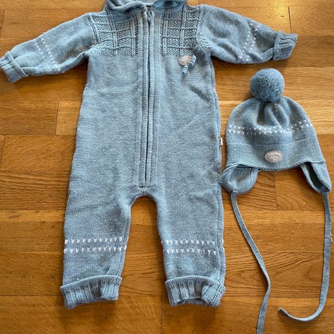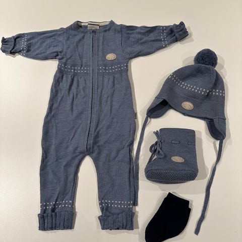 Sett lillelam 68 merino ull lue tøfler ulldress