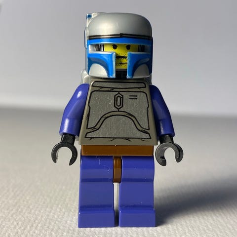 Original LEGO Star Wars Yoda i Sand Green, figurkode sw0051. En ettertraktet og mindre vanlig variant, spesielt populær blant samlere av tidlige Star Wars-minifigurer.