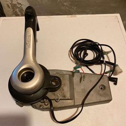 Innfelt gass/gir med tilt for Yamaha. Fulgte med en motor jeg kjøpte. Ser ut til å være komplett.