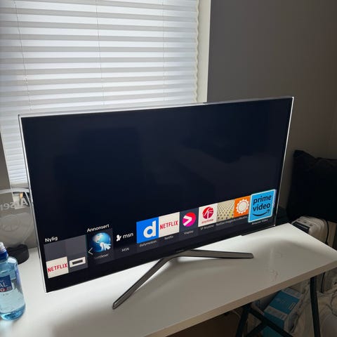 Selger en Samsung 55″ QLED 4K Smart-TV i pen stand.