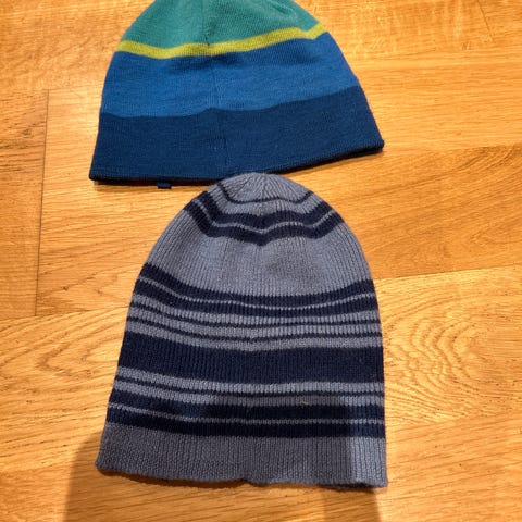 2 pent, men synlig brukte luer fra Norrøna. One size. Dobbelstrikkede luer som er gode og varme og brukt av 2 gutter. Med oppbrett. Selges helst samlet.