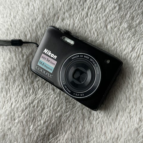 10 megapiksler, 3x optisk zoom, innebygget blits.