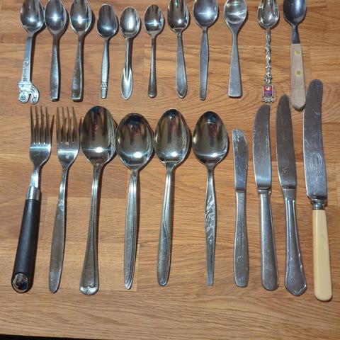Delene består av 12 kniver og 9 gafler. Under flytting har øvrige deler blitt borte.