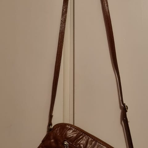 Selger denne pene datavesken/skuldervesken i brunt skinn fra Springfield. En hovedlomme som gjør den veldig praktisk når man ikke skal ha med veldig mye.