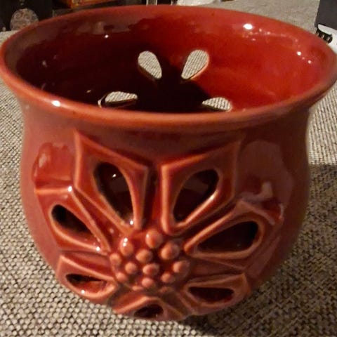 Ca. 18 cm høy, 10 cm diameter, perfekt dekor til hylla eller bordet. Pent brukt tilstand uten skader eller fliser, flott glans.