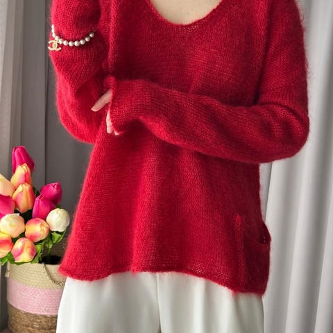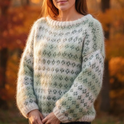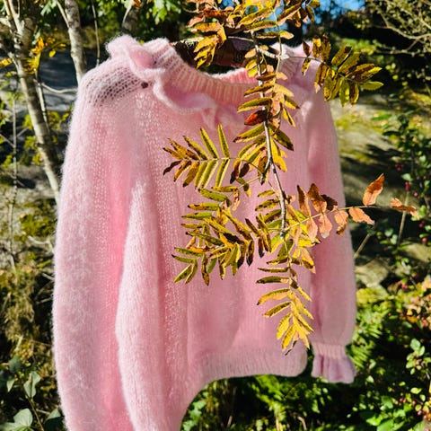 Håndstrikket i Islandsk uspunnet 100% ull sammen med Mohair Kid Silk.
