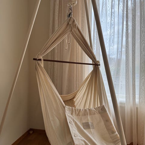 En fantastisk hengevugge fra Moonboon med fast, flat bunn. Vi har vært så fornøyde med denne og har fått en barseltid med rikelig med søvn for vår lille. Letter innsovning og bidrar til lengre søvn. Helt super, og mye bruk igjen!