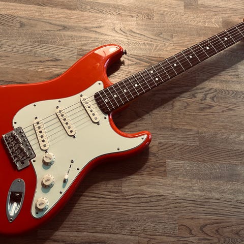 Klassisk Strat-lyd med American Vintage ’65 single coils. Svært komfortabel hals. Ettertraktet modell som holder seg godt i pris.