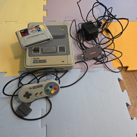 Super Nintendo spillkonsoll orginal med 2 original kontroller. Konsollen har tilkoblingsporter for kontrollere og er kompatibel og Alla kabler for att kunna koppla til hdmi med 7 Super Nintendo-spill. Orginal dom og Bland annat zelda, donkey kong, super mario. Og någon er intresert i att byte emot exempel Pokémon kort då jag og min dotter børjat samla på det istede for spill konsoller har också del mer konsoller og spill. Både sega master med massa tilbehør og spill og massa gamecube spill og plastation 3,4 med massa speil til. Priset som står er ikke det som gæller! kom gjerna med bud eller førslag på något morsomt byte 😅 mvh Dennis