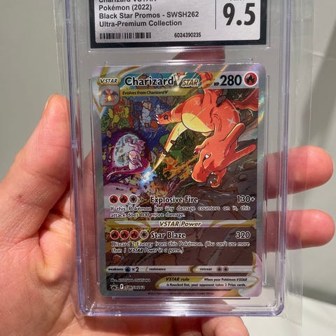 Selger to Charizard promokort. Det er #SWSH260 og #SWSH262. Begge kortene er gradert hos PSA.