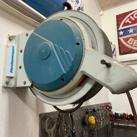 Selger en original Nederman slangetrommel av høy kvalitet. Dette er proffutstyr beregnet for verksted, industri, garasje, bilpleie og profesjonelt renhold.