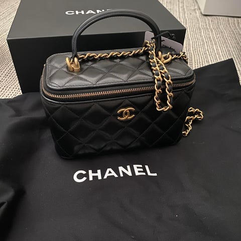 Kan hekte på en lenke dlik at den kan bæres cross body. Lenken er ikke Dior,