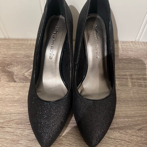 Tamaris Hæler i størrelse 39, svart farge. Skoene har en klassisk design og passer til formelle og uformelle anledninger.