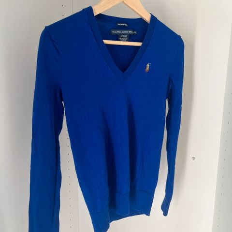 Pen kongeblå ralph lauren polo sport genser i 100% behagelig merinoull. Klør ikke i det hele tatt og er sinnsykt god å ha på. Kjøpt på tise,men var for liten.