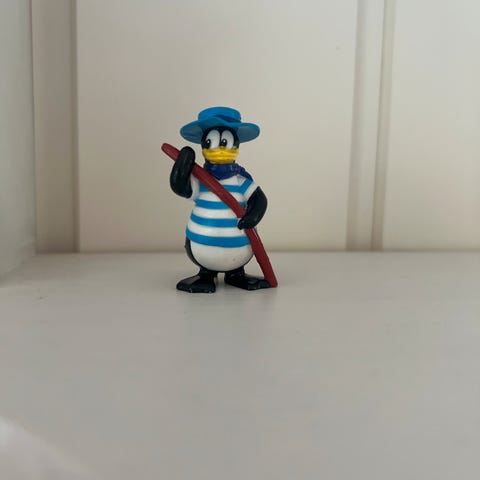 Den avbildede figuren er en vintage Pingu-figur produsert av Bullyland i 1990. Disse små samleobjektene, ofte laget av PVC-gummi og håndmalte, ble solgt i Tyskland og internasjonalt, noen ganger assosiert med Kinder-egg eller andre salgsfremmende produkter.