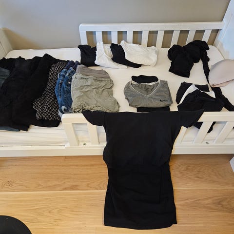 Selger en stor pakke med gravidklær. Alt ble kjøpt nytt og er i str M (med unntak av en topp eller to)