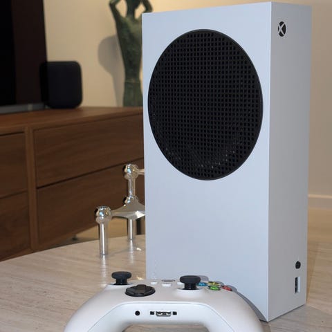 Microsoft Xbox Series S spillkonsoll hvit med kontrollere og headset