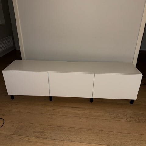 Pent brukt tv benk, den har mørkebrune bein men man kan ta de av om man ikke vil ha de på. Må hentes i dag