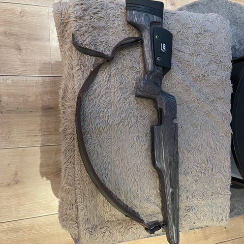 Pent brukt stokk til sauer 200str/SSG3000 selges. Har ikke bakkappe, men det er støpt inn treklosse i bakkant av kolbe slik at du kan montere inn hva du ønsker av bakkapper. (Limbsaver er ett billig og veldig godt alternativ) Anbefaler en arcarail under forskjeftet så er du klar for å montere flyttbar tofot etter underlag på stage.