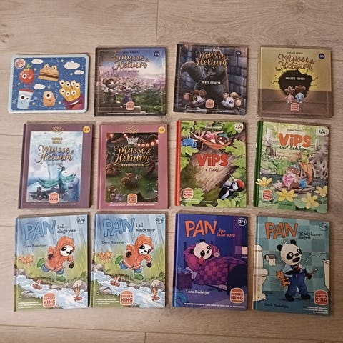 Barnebøkene passer til barn 7-10 år, noen er typ tegneserie.
