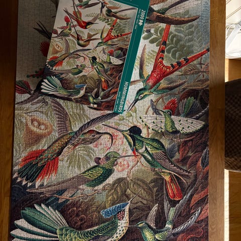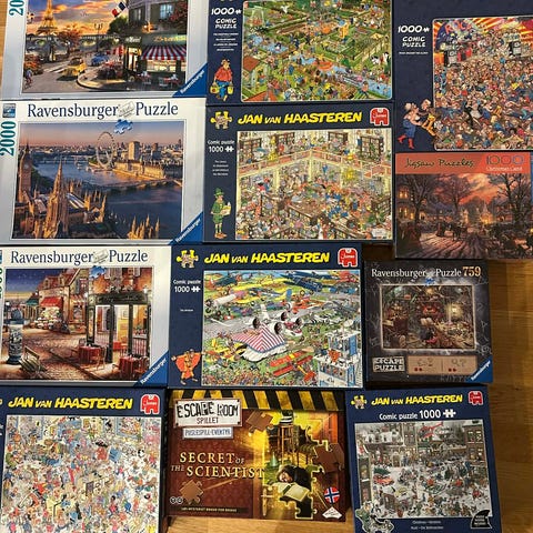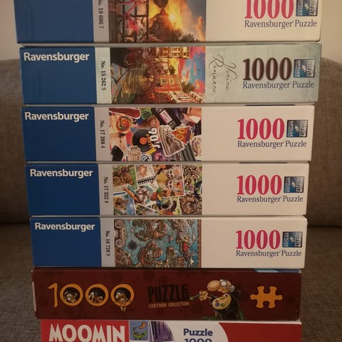 Ravensburger Dean Macadam puslespill med 1000 (999) biter. Puslespillet har et detaljert og fargerikt motiv med ulike figurer og elementer. Passer for voksne og eldre barn som liker utfordrende puslespill. Skulle gi ro og fred i heimen i jula, men et besøk av en firbeint venn resulterte i at 1000 brikker ble til 999. Men om man ønsker et morsomt puslespill og ikke bryr seg om at EN(!!!) brikke mangler, så er dette noe for deg. Utover dette så er puslespillet som nytt