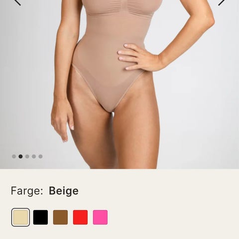 Er bare brukt en håndfull ganger da den krympet for fort i skapet. Står at det er en str M, men jeg vil si den er en str S. Jeg er en str 40 (tidvis str 38), men denne får jeg ikke til å lukke mer. Ville sagt den er en str 36.