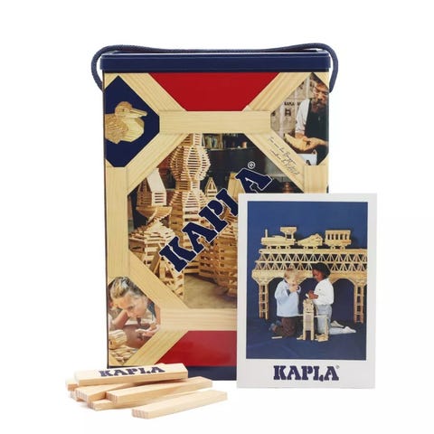 Plus Plus byggeklosser i ulike farger og former. Settet inkluderer flate byggeplater og 30 byggeklosser som kan settes sammen for å lage forskjellige figurer og strukturer.