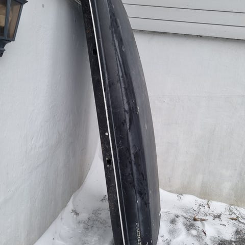 Den måtte tilpasses litt for å passe på vår bil. Den er godt brukt, men har ligget ute i høst. Gis derfor bort.