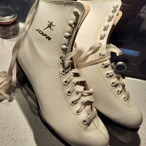 Cycar Andre skøyter i størrelse 41. Skøytene er hvite og designet for generell skøyting.