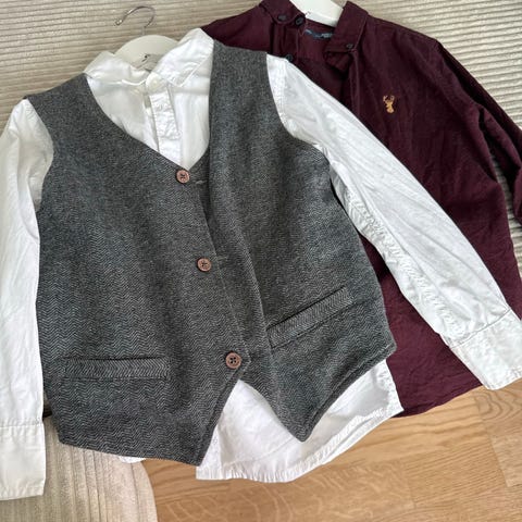Tre ensfargede gensere og en spiderman. Pent brukt