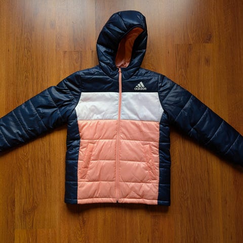 Pent brukt Adidas boblejakke, brukt av ett barn i en sesong. Ingen slitasjeskader, varm og god, lett å vaske