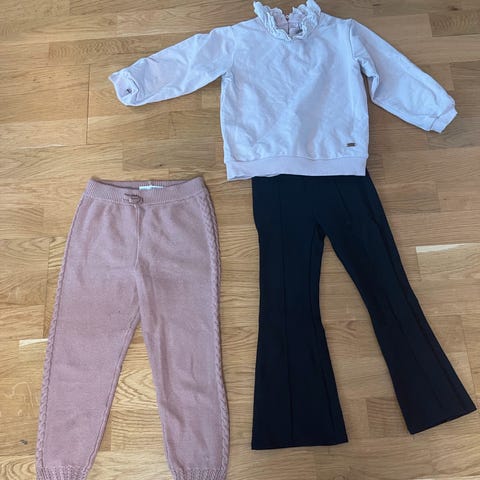 Trøye fra Hust & Claire er helt fin, mens bukse fra Vilje & Ve har nuppet og slitasje på det ene kneet. I merinoull
