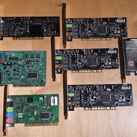 Se bilder for modell eller send en melding på det du evt ønsker. Lydkort fra Creative SoundBlaster og ASUS. Perfekt til retro maskiner eller hvis man har hovedkort og mangler ok lydkort.
