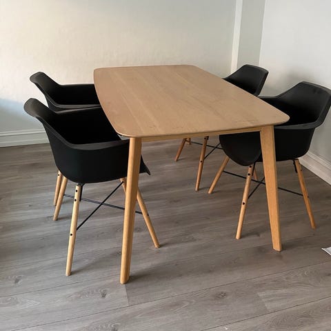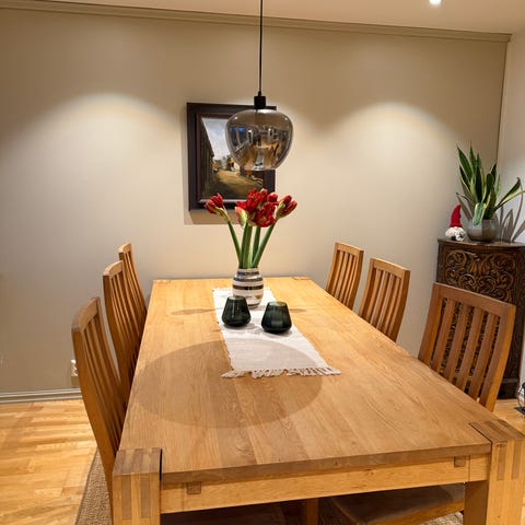 Ekstremt fint og velholdt eikebord med 6 stoler til salgs