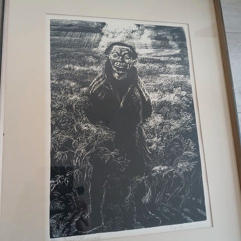 Serigrafi fra 1974. Nr. 29/75. Merket "Fra gamle dager"(fra den siste viking ". Kjøpt hos Blomqvist.