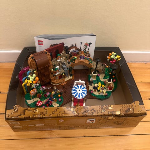 LEGO Friends skole med tre minifigurer. Stephenie sin original overdel mangler i tillegg til en PC og de originale rosa blomstene på utsiden, som jeg har erstattet med røde. Skolen har en kantine, et kunst/musikk rom, et naturfags rom og et toalett. Bruksanvisningene medfølger og settet kommer nedbygd i en pose.