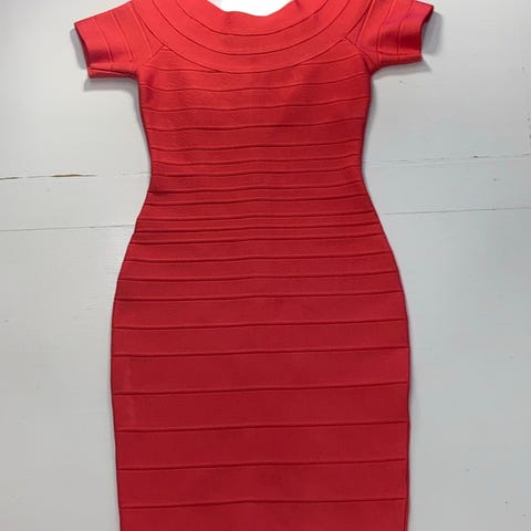 Fantastisk bandage kjole i Herve Leger stil, perfekt for fest og julebord. Nydelig burgunder farge med kule detaljer, fantastisk passform.