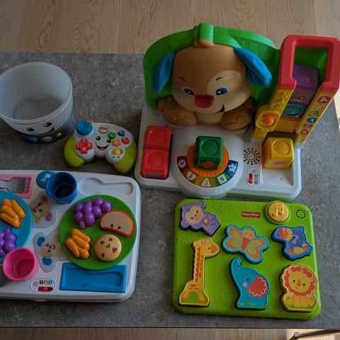 Lekene er hele og fungerer som de skal, og de med lyd medfølger det batterier i. Ved handel oppgi nr på leken(e) du ønsker.