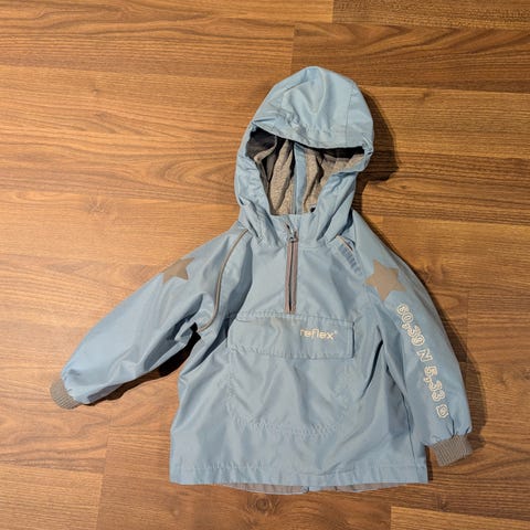 Selger en fint brukt litt tjukkare anorakk fra Reflex, fin vinterhalvåret, haust/tidlig vår. Superpraktisk med glidelås bak. Str. 80. Mørk beige/lys brun.