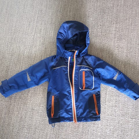 Vår jakke fra Refleks str 98. Er en flekk fremme , vist på bilde . Var der da vi kjøpte den ny. Ellers ingen flekker eller hull. Kommer fra dyrefritt og røykfritt hjem.
