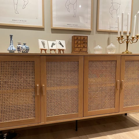 Flott Skjenk i lyse brunt treverk. m 3 glassplater.