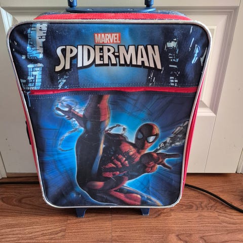 Liten og nett barnekoffert med hjul og trillehåndtak. Perfekt til overnatting hos besteforeldre eller på ferie.