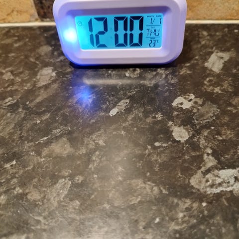 Stilig og praktisk sammenleggbart bordur i sølvfarget design. Har analog klokke øverst og LCD-display nederst (perfekt for alarm/dato/temperatur, avhengig av innstilling). Kan slås sammen og tas med på reise, eller stå fremme på nattbord eller kontor.