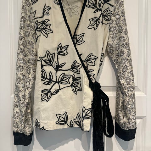 Nydelig blondebluse med knyting bak.