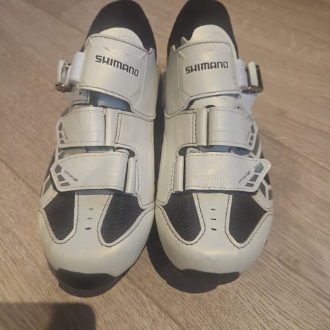 Shimano sykkelsko i størrelse 36, hvit farge, designet for sykling med justerbare borrelåser og spenne for sikker passform. Spd feste for gravel eller spinning.